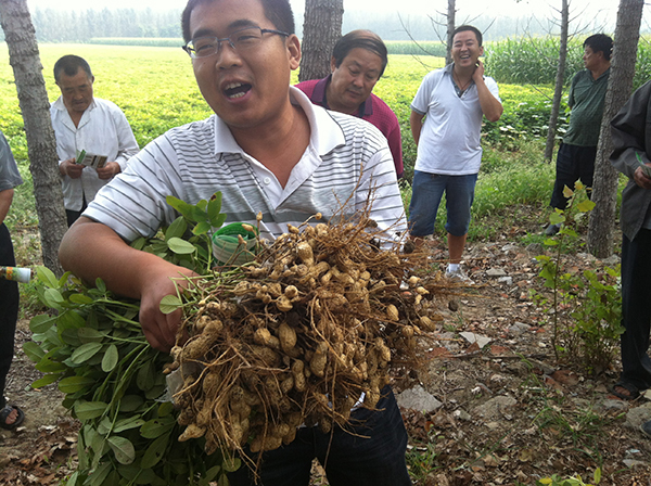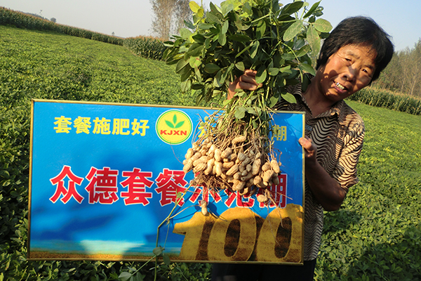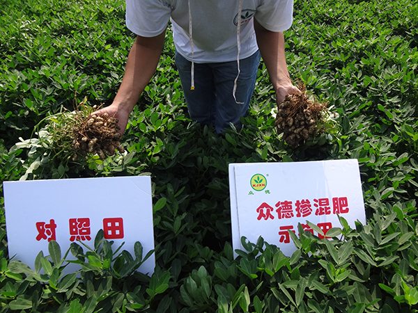 沂南縣辛集北左泉村農(nóng)民顧守武,去年用眾德(16-12-14)120斤/畝,生物有機(jī)肥80斤/畝,新朋友貴蓋美30斤,持力硼2袋,在翻地前一次性施入,到9月10號(hào)收獲期測(cè)產(chǎn)1173斤,與對(duì)照田產(chǎn)量1055斤相比,畝增產(chǎn)118斤,增產(chǎn)幅度11.2%。顧先生滿(mǎn)臉喜悅的說(shuō):“用眾德花生高產(chǎn)套餐方案效果非常好,歸功于眾德系列肥料原料考究,配方合理,營(yíng)養(yǎng)全面,對(duì)于重茬、土壤酸化等問(wèn)題障礙能夠得到有效解決,改良并活化土壤,特別是態(tài)康科、康樸系列葉面肥,能促進(jìn)花生根系和葉片生長(zhǎng),補(bǔ)充硼、鉬、鈣等中微肥,提高座果率、改善品質(zhì),提高產(chǎn)量,農(nóng)民最終獲得收益。